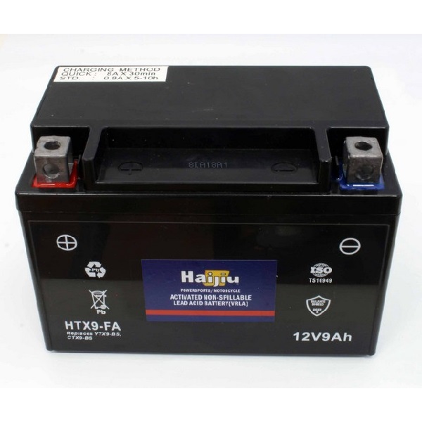 Η μπαταρία Haijiu HTX9-FA 12V 9Ah πληροί όλες τις προδιαγραφές του κατασκευαστή τη μοτοσυκλέτας σας. Ιδανική για εποχιακή χρήση και κρύο καιρό. Σπουδαία χαρακτηριστικά ασφάλειας και αντοχή στους κραδασμούς.